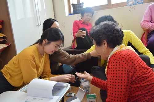 2018년 4월 20일 금요일 10:00~ 노인공동생활가정보금자리사업 계동 보금자리에서 건강증진 프로그램을 실시 하였습니다. 한영대 간호학과 학생들이 혈압과 당을 체크하여 어르신들의 건강을 도모하는 시간으로 무심히 지나칠수있는 건강을 되세겨 보는 시간 이였습니다.