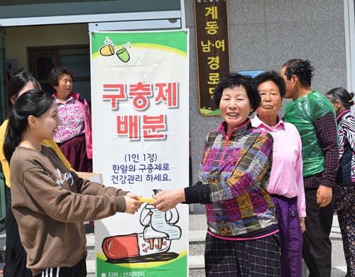 이동복지및 노인공동생활가정 보금자리사업 돌산 계동, 봉양, 남외 마을 어르신들께 봄철 꼭 복용해야할 구충제를 지급하였습니다.