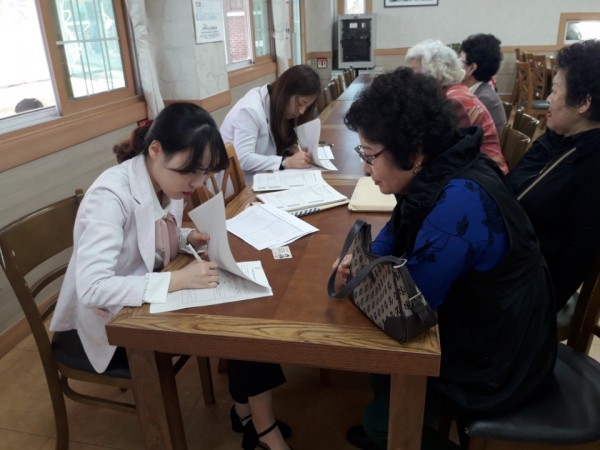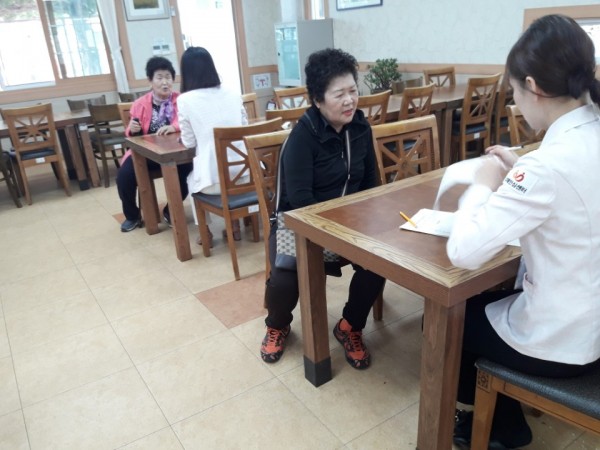 4월2일 10시부터 복지관 경로식당에서 치매예방학교 참여자를 대상으로 사전치매검사를 실시하였습니다.
