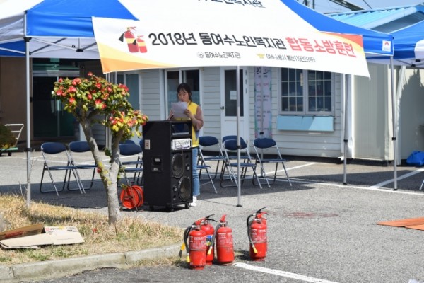 금일 14시부터 본 복지관에서 여수소방서 봉산119안전센터와 합동으로 소방훈련을 실시하였습니다.