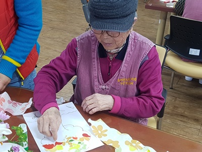 동여수노인복지센터 주간보호에서는 한지와 색종이를 이용해 그림동안에 멋지게 작품을 완성했답니다. 알록달록 작품은 어느 유명한 작품 못지않네요... 우리어르신들 언제나 화이팅 입니다.