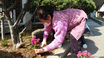 복지관과 인근지역을 청소하고 화단에 예쁜 꽃화분을 심어도 보았답니다.