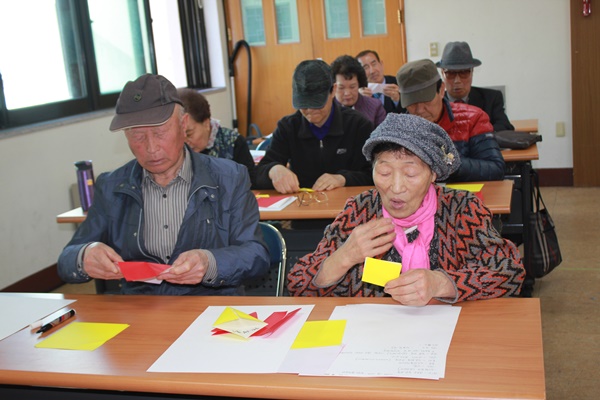 노인사회활동지원사업 지혜담강사 참여 어르신 20명을 대상으로 신문활용, 종이접기, 유아율동 활동에 필요한 기술및 지식을 습득하기 위해 각 분야의 전문강사를 모시고 활동전 역량강화 교육을 본 복지관 2층및 3층에서 이틀간 진행하였습니다. 계속되는 교육 참석에 힘들어 하셨지만 배우실때 만큼은 누구보다 열정적인 모습을 보이셨습니다. 어르신들의 열정에 하나라도 더 알려주고 싶어하시는 강사님과 적극적으로 임하시는 어르신들의 모습에 긍정적인 에너지가 보였습니다. 향후 더 발전된 보수교육으로 어르신들의 자존감을 더 높여드릴것을 약속하였습니다.