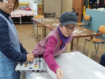 동여수노인복지센터 주간보호에서는 구연동화 계란판에 탁구공 넣기를 진행했답니다.