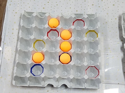 색깔에 맞춰서 탁구공을 넣어보는 즐거운 시간을 가졌답니다.