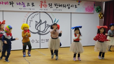 동여수노인복지센터 주간보호에서는 설 명절을 맞이한 단체 차례지내기 및 덕담 나누기, 세배드리기 등의 설명절 행사를 진행했습니다. 유아동의 앙증맞은 공연을 관람하고 민속놀이 윷놀이를 진행하여 더욱더 재미난 시간을 가졌답니다.