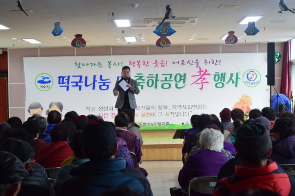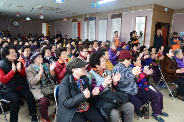 2월 21일 수요일 김진노래봉사단에서 복지관 및 지역 어르신들을 대상으로 효도급식(떡국)과 공연봉사(대중가요,가야금연주, 어르신 노래자랑)를 진행하였습니다.