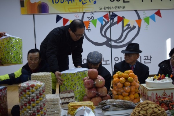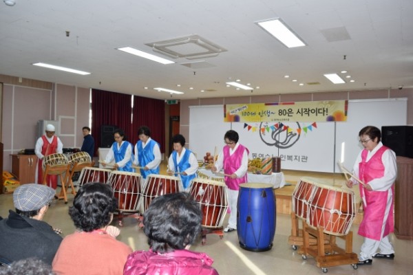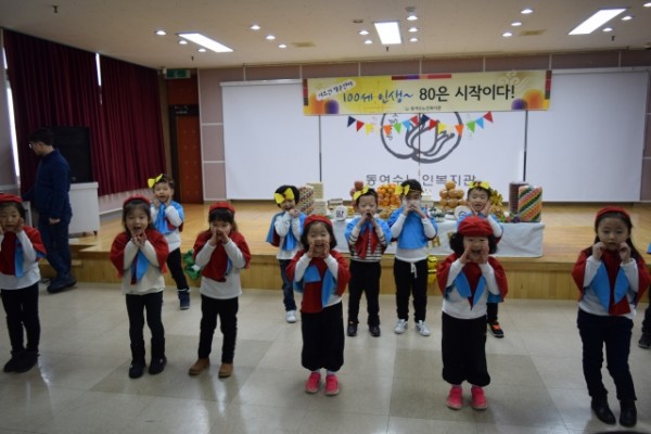 10월~12월에 팔순을 맞으신 다섯분의 어르신을 모시고 선물전달, 어린이집 공연, 난타 및 각설이 공연이 있었고 특별효도급식까지 실시하였습니다.