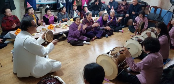 보건사업과와 연계하여 순환의료비서스를, 문화예술과와 연계하여 우도풍물공연이 생신잔치에 더해졌습니다.