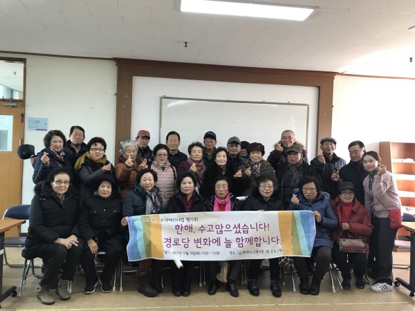 1년 동안 함께 연계한 경로당 임원진분들께 감사함을 전해드릴 수 있는 시간을 마련할 수 있어서 뜻깊었습니다. 다시한번 2017년 경로당운영혁신사업 경로당 임원진분들께 감사드립니다.