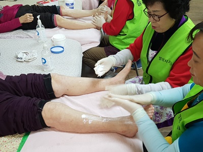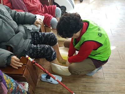 발마사지 참여가 어려운 남자 어르신을 대상으로 봉사자가 직접 족욕을 해주셔서 더욱더 만족도가 높았답니다.