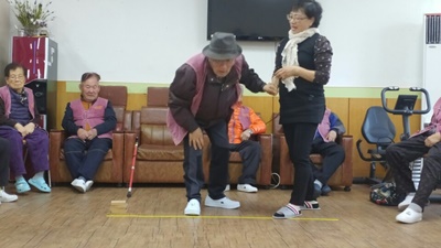 오늘은 추억의 비석치기 놀이를 진행했습니다. 고도의 집중력을 높여 상대의 비석 맞추기를