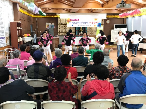 신바람체조 공연단으로 하얀연꽃 어르신들과 경로당어르신들이 함께 하는 시간을 가졌습니다.