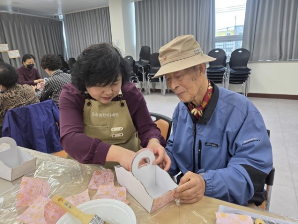 어르신들과 함께 한지를 활용한 ‘손잡이 바구니 만들기’ 활동을 즐겁게 진행하였습니다.