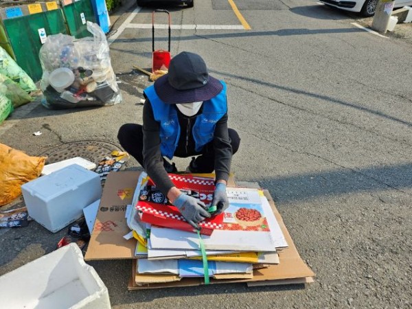 완연한 봄 날씨 속에서 어르신들이 적극적으로 분리수거 활동을 펼쳤습니다.