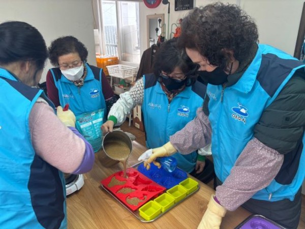 커피찌꺼기를 활용한 탈취제, 비누를 제작하였습니다. 설거지 비누는 커피찌꺼기가 들어 있어서 기름때, 싱크대 청소에 용이하다며 배부 받은 지역 주민들께서 말씀해주십니다! 덕분에 친환경 제품에 대한 인식이 높아졌고, 커피찌꺼기 재활용이라는 긍정적인 반응을 얻었습니다.