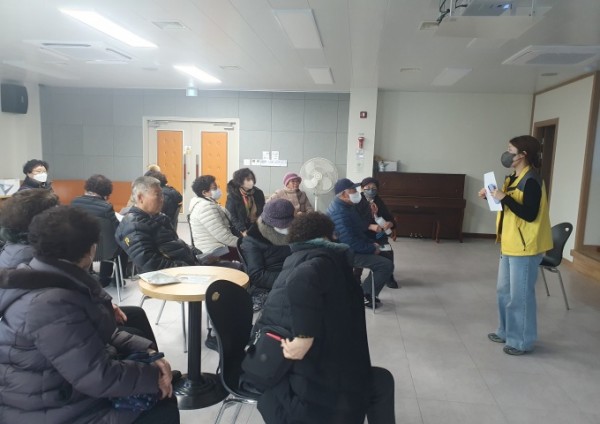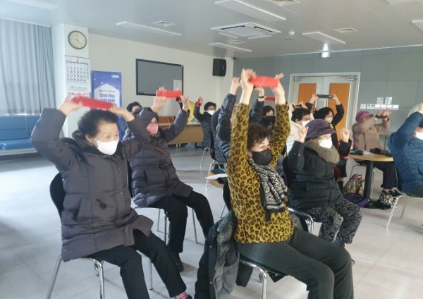 [분관] 동여수노인복지관 분관에서는 경로당 건강체조강사파견사업 참여자분들과 연구모임 시간을 가졌습니다. 일지취합 일정과 연구모임을 병행하여 진행하였기에 참여자 전원이 참석하여 진행되었습니다. 이번 연구모임에서는 밴드를 활용한 상·하체 운동을 학습하였습니다. 연구모임을 통해 수요처가 원하는 활동이 무엇인가를 파악하고 참여자분들의 아이디어와 정보를 교류할 수 있는 유익한 시간이었습니다.