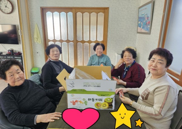 새롭게 시작한 2025년 연계경로당 어르신들께 맛있는 밑반찬(잡채, 사색나물, 새우,깻잎전)과 새콤달콤한 키위, 어르신들이 좋아하는 꿀떡과 절편을 준비해 경로당을 방문했습니다.