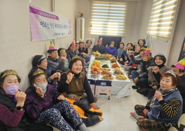 조용했던 경로당은 맛있는 음식, 즐거운 음악, 힘찬 박수소리로 활기가 넘쳤습니다. 경기는 어렵고 세상이 시끄럽지만 어르신들의 행복한 노후를 위해 동여수노인복지관은 2025년에도 열심히 뛰어보겠습니다.