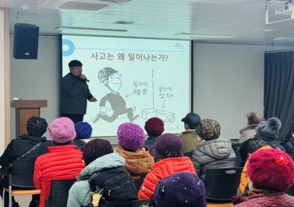 한국산업안전보건공단 전남동부지사 김기태 강사 진행으로 시니어 안전의식, 재해유형별 대책 등 참여자의 안전의식을 높이고, 안전사고 대비를 위한 대면 교육과 금융사기피해 예방을 동영상 교육을 실시하였습니다.