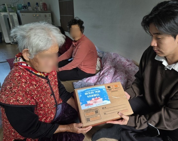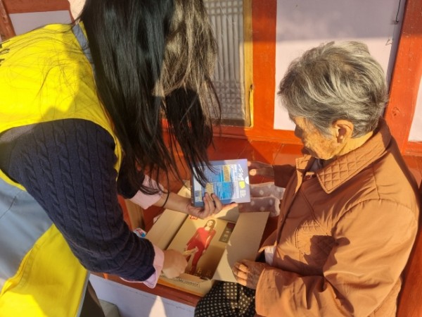 12월 2일, 다섯 분께 직접 방문하여 방한물품(내복, 수면양말, 파스)을 전달하고