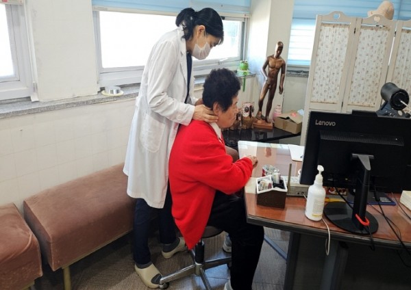 어르신들의 아픈 곳이 어딘지 확인하고 진맥 하면서 일상생활에서 실천할 수 있는 생활운동법과 식이요법도 알려주셨습니다.