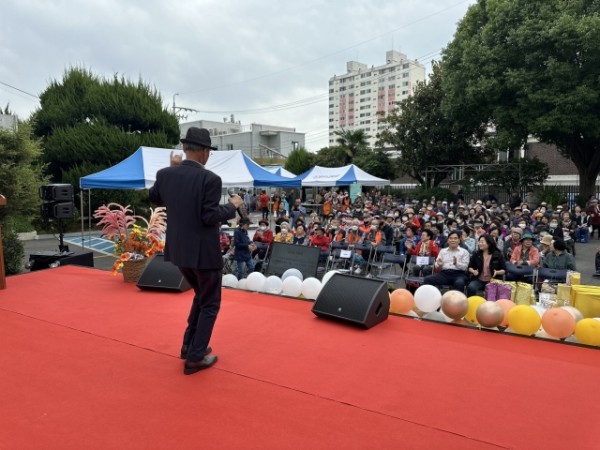 그리고 노래자랑은 예선 심사 15명 중 본선 무대에 오른 8명의 어르신들이 노래 경연을 펼쳤습니다. 이날 행사에는 퓨전앙상블 “블랑”의 축하공연을 시작으로 먹거리 나눔, 행운권 추첨, 미니게임을 진행하며 행사에 활기를 더했습니다.