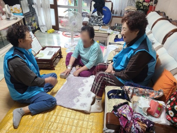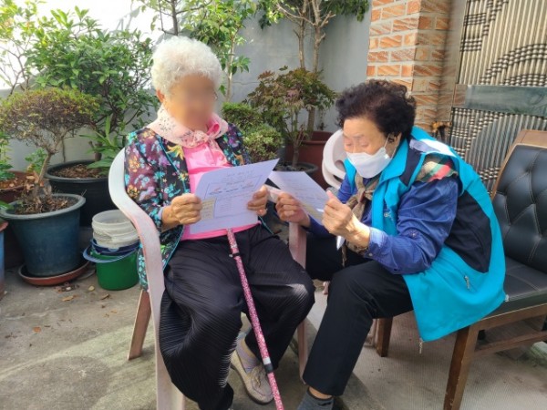 참여 어르신들이 건강문제로 외부 활동이 적은 대상자 어르신들을 찾아가 서로 안부도 묻고 말벗이 되어줍니다.