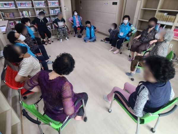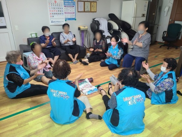 경로당 어르신들과 체조활동을 하며 즐거운 시간을 보내십니다.