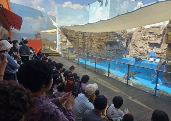 맛있는 점심으로 배를 든든하게 채운 후 헬가스텐첼 사진전을 감상하고, 바다사자 먹이 체험을 관람하며 어린 아이처럼 귀엽다고 사진, 동영상을 바쁘게 찍는 어르신들입니다.