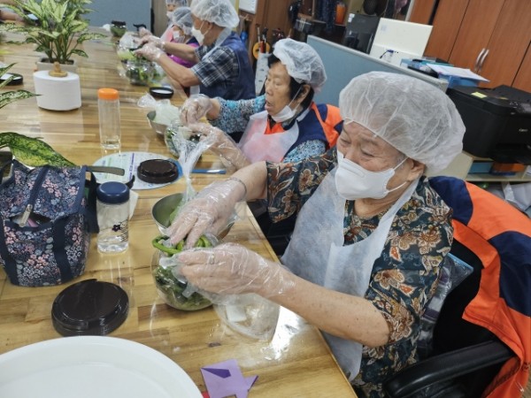 여수시 지원으로 주간보호 이용 어르신을 대상으로 체험활동 건강꾸러미 활동으로 돌산갓물김치