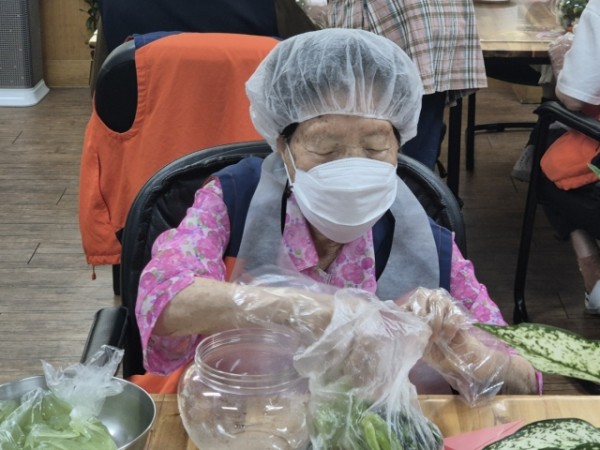 를 만들었습니다. 김치담기는 어르신들의 삶과 친숙한 요리활동으로 다양한 감각기관 자극과