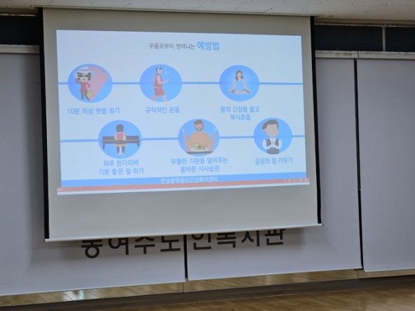 노년기 정신건강에 대해 알아보고 예방관리 교육을 진행했습니다.