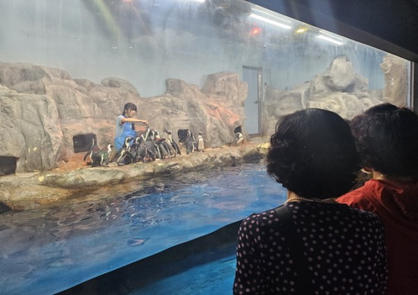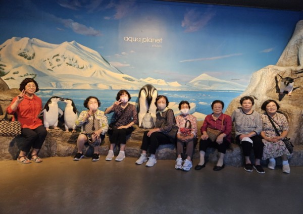 아쿠아리스트가 설명해 주는 아메리카 펭귄의 특징 관찰과 먹이 주기 관람은 어르신들의 집중력을 높였고 바닷속에서 자유롭게 누비는 인어공주 수중쇼는 어르신들이 물개 박수로 즐겁게 화답하는 추억이 되었습니다.