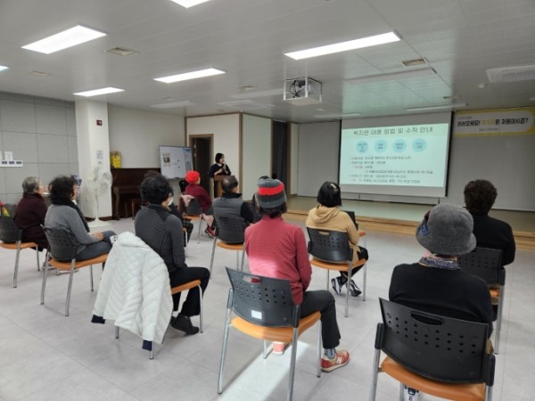 복지관 사업안내, 준수사항 및 이용방법, 2024년 평생학습 참여방법에 대해 안내하였으며 보이스피싱 피해예방을 위한 영상자료도 함께 상영해 드렸습니다.