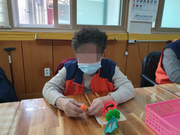 -노인주간보호센터 프로그램 지원사업으로 "시니어 뇌브럭"활동으로 홍시를 뇌블럭으로 만들고