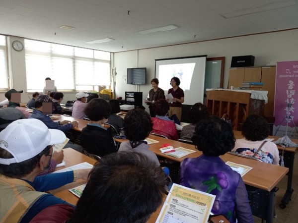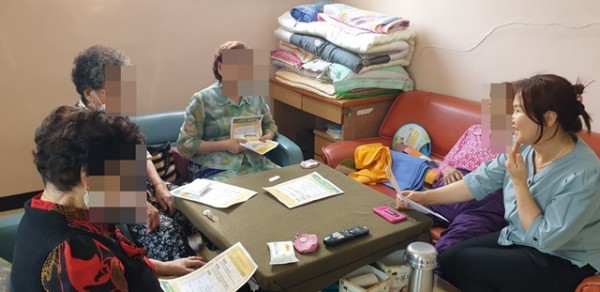 6월에는 여서동과 문수동에 위치한 경로당과 복지관 신규회원 어르신교육 시간에 홍보를 하였습니다.