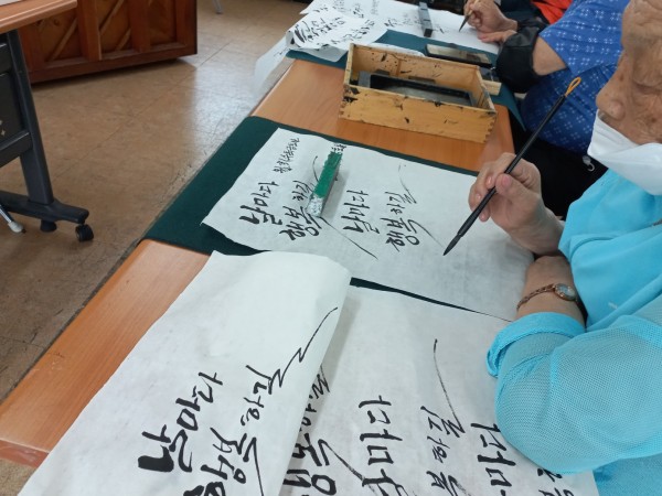 날로날로 발전하는 어르신들의 손글씨 솜씨에 강사님께서 뿌듯해 하십니다.