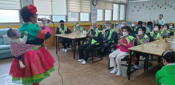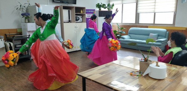 꽃타령,각설이 타령, 민요춤등 다채로운 공연으로 이용어르신과 함께 어우려져
