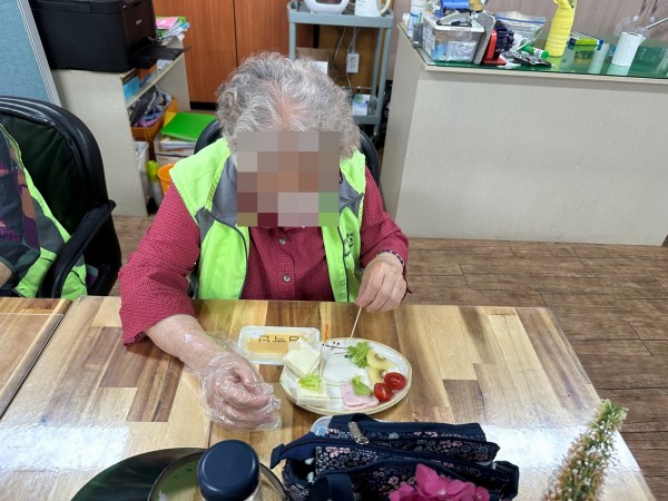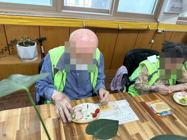 -주간보호 이용어르신께서 평소에 접하지 못했던 식빵까나페을 만들었습니다.