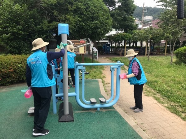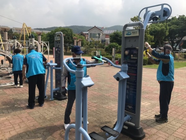 노인사회활동지원사업 생활체육시설 소독 사업단 6월 활동 모습