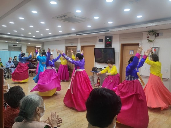 동여수노인복지관 노인자원봉사활성화사업에서 운영하는 시니어라라봉사단 공연봉사단이 돌산 마니원 요양시설에 다녀왔습니다. 부채춤, 각설이타령, 민요부르기. 꽃타령등 다양한 공연으로 이용 어르신들에게 잠시나마 즐거운 볼거리를 제공해 드렸습니다. 긎은 날씨에도 한분도 빠짐없이 함께해주신 시니어라라봉사단 어르신들께 감사드립니다.