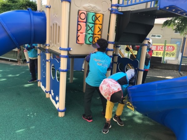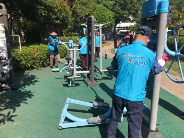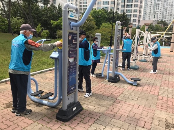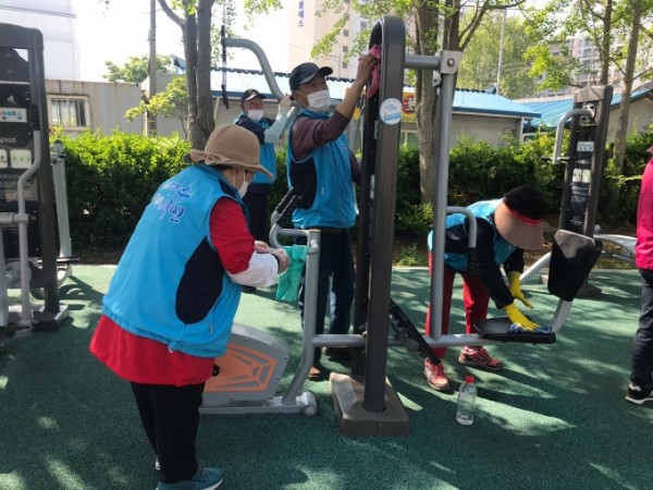 노인일자리 및 사회활동지원사업 생활체육시설 소독 사업단 활동모습