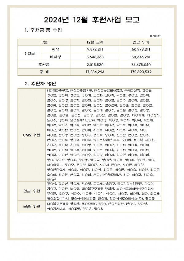 후원에 동참해주신 모든 분들께 진심으로 감사드리며 2025년에도 늘 건강하시고 새해 복 많이 받으시길 바랍니다.