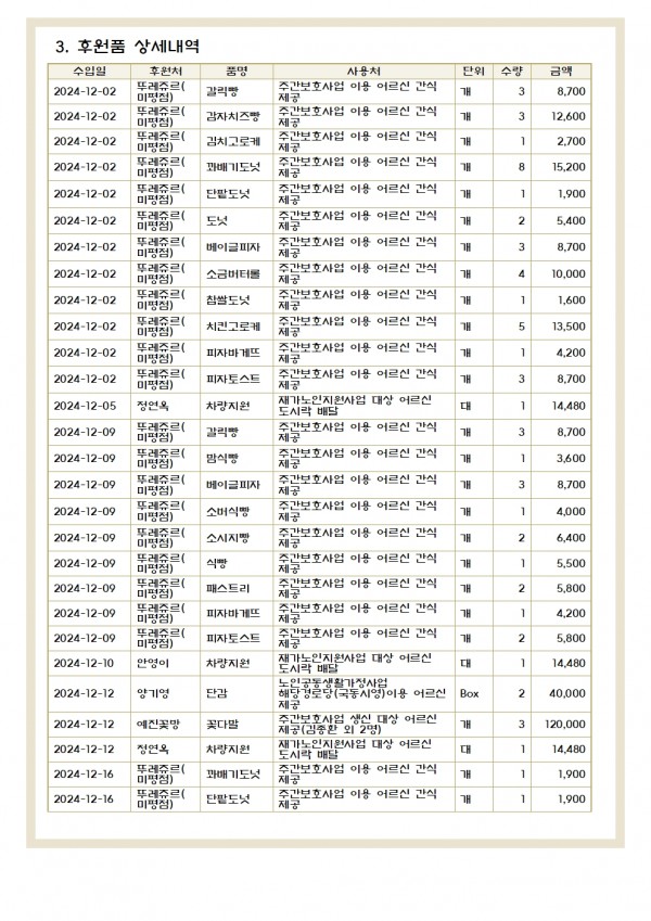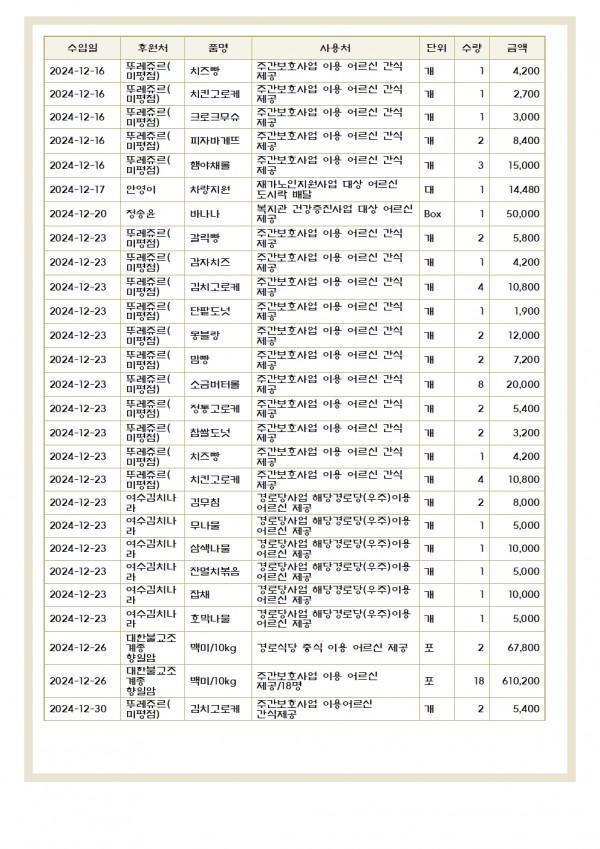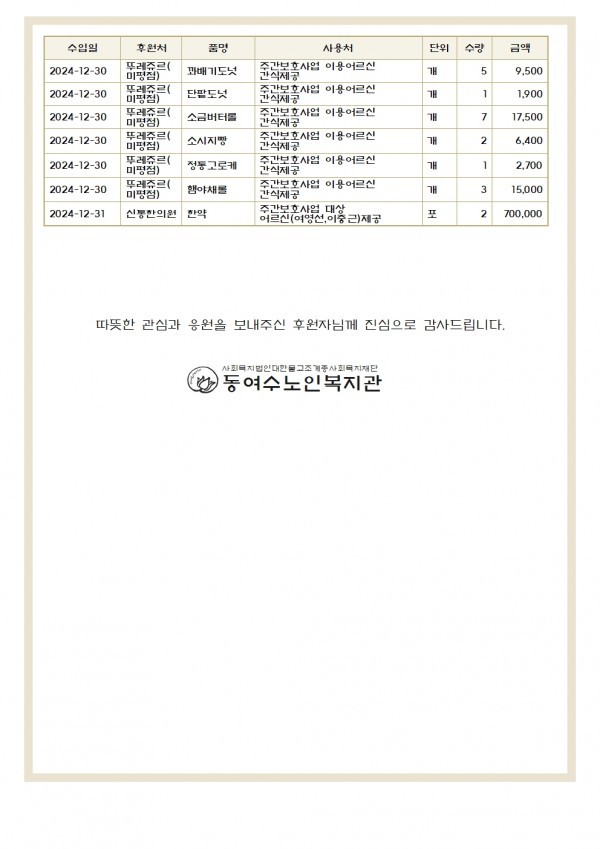 2024년 12월 동여수노인복지관에 후원해주신 고마운님입니다.