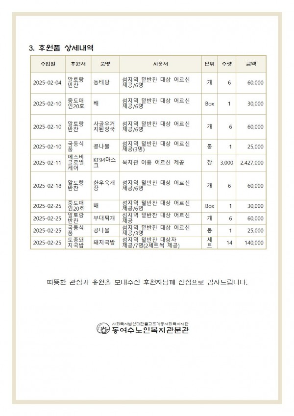 2025년 2월 동여수노인복지관분관과 함께한 고마운 분들입니다.