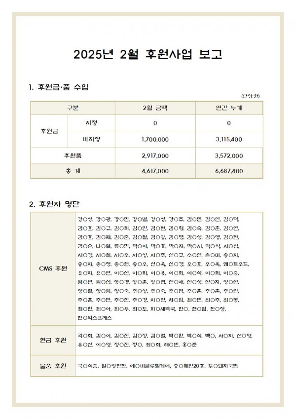 2월 1일~28일까지 총 145명 후원자/처께서 총4,617,000원을 후원해주셨습니다.