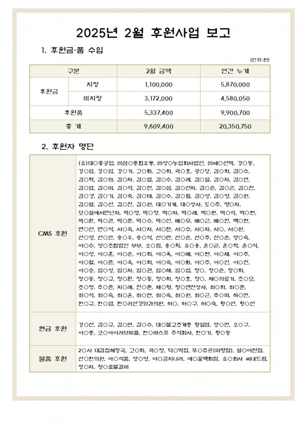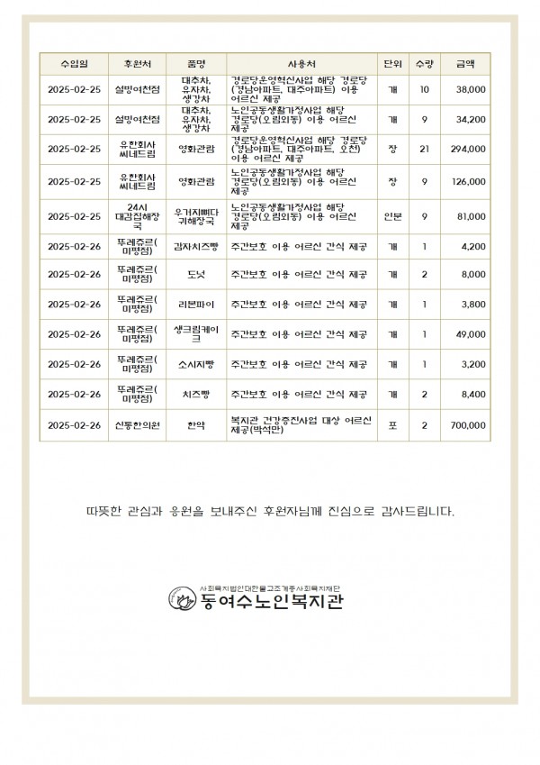 2025년 2월 동여수노인복지관에 후원해주신 고마운님입니다