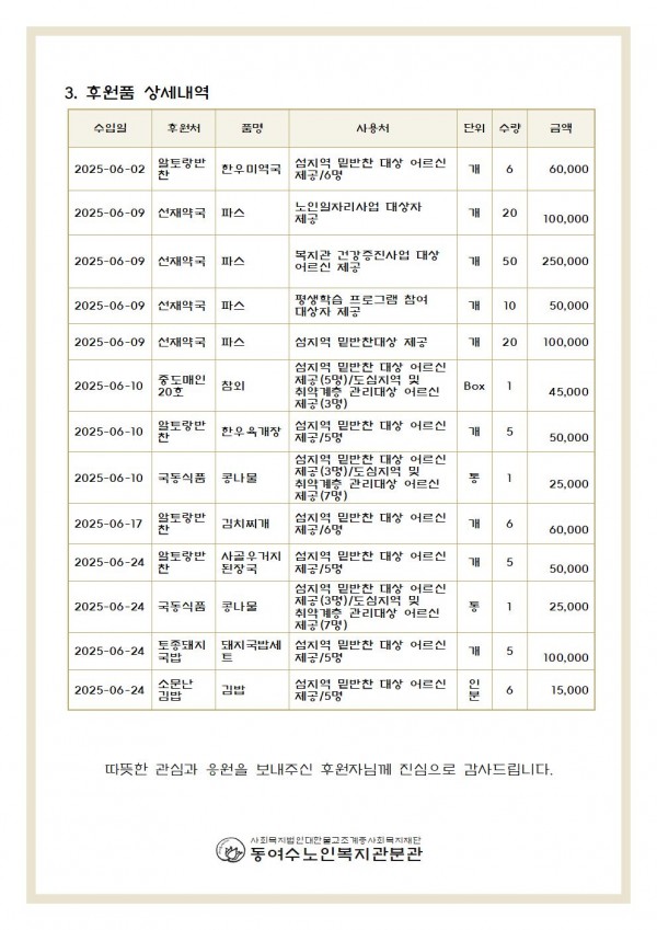 2025년 6월 동여수노인복지관분관과 함께한 고마운 분들입니다.