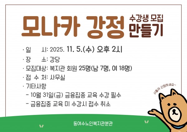 [분관] 문화 프로그램 "모나카 강정 만들기" 수강생 모집
